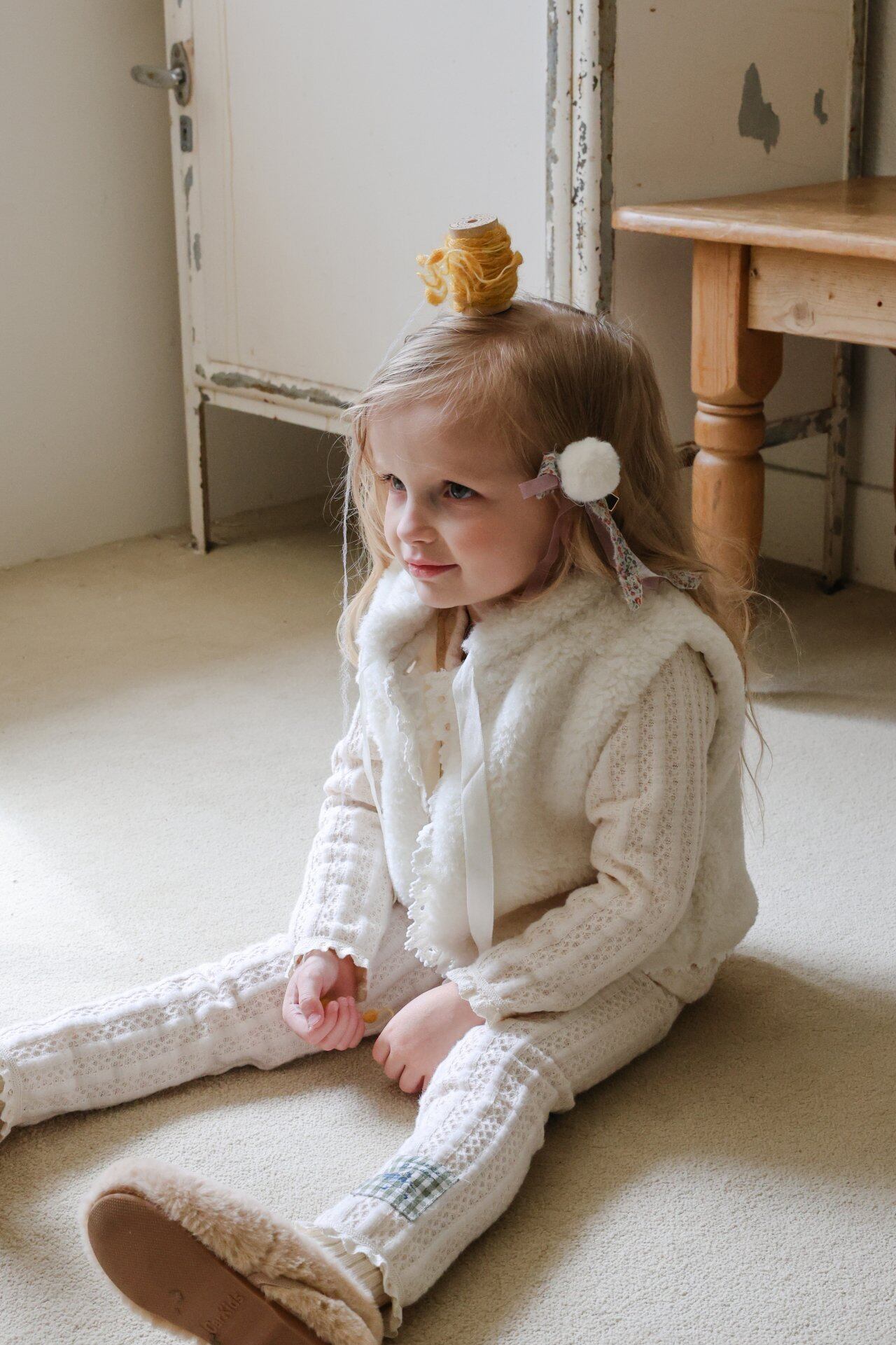細いリボンにミンクのポンポンがついていて冬コーデを可愛くしてくれます♡