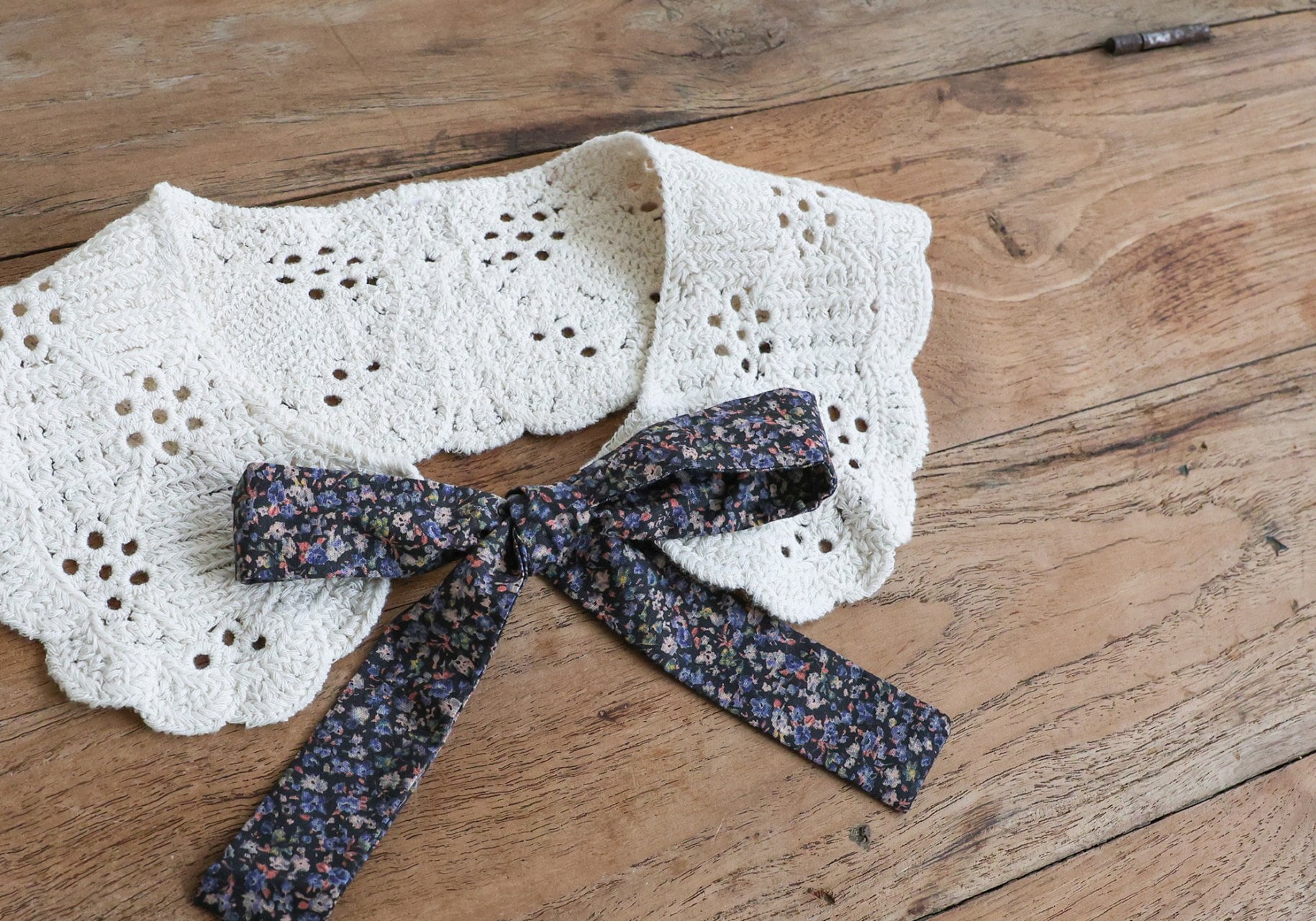 レースx花柄のリボンがかわいいつけ襟♡