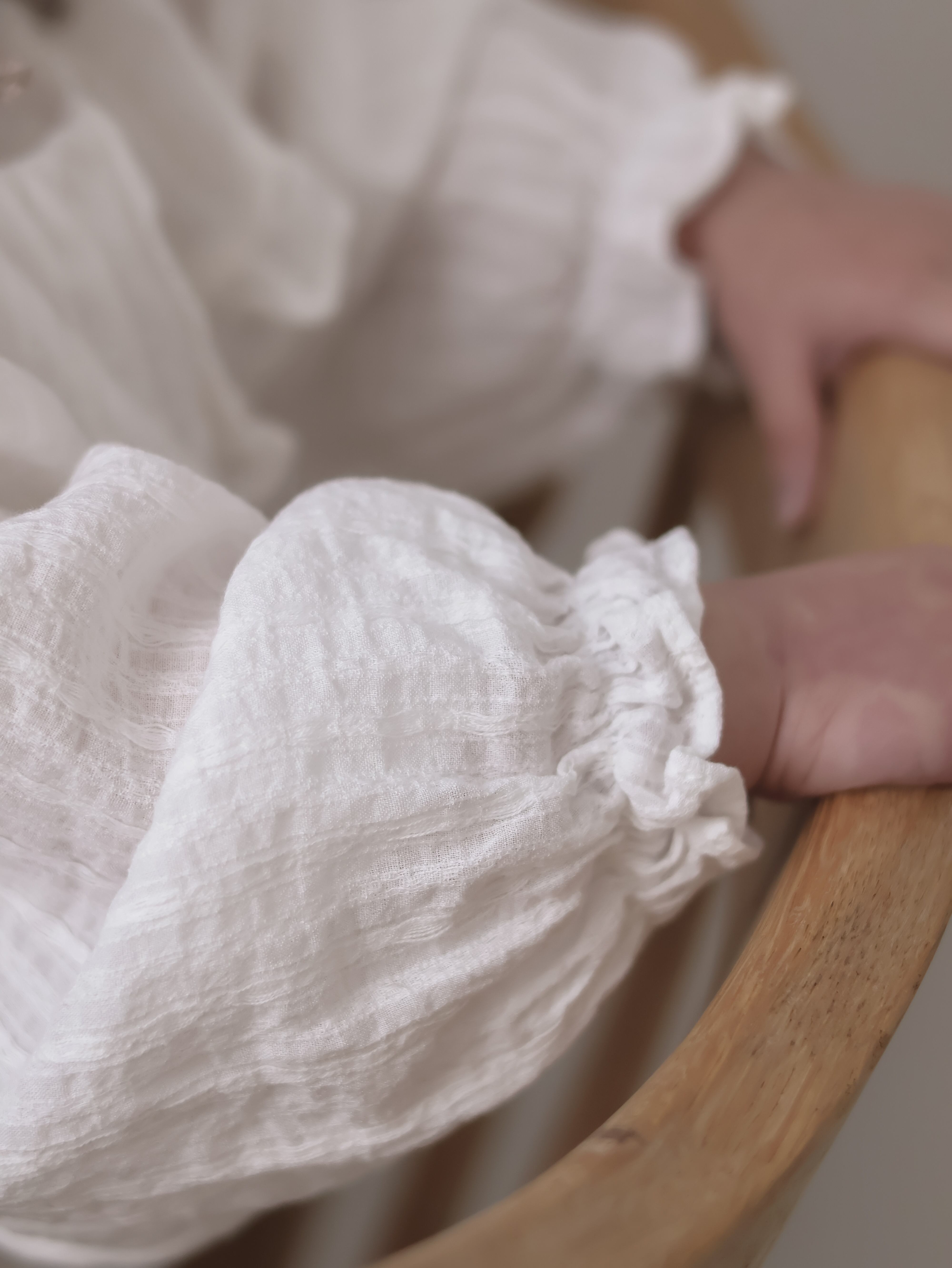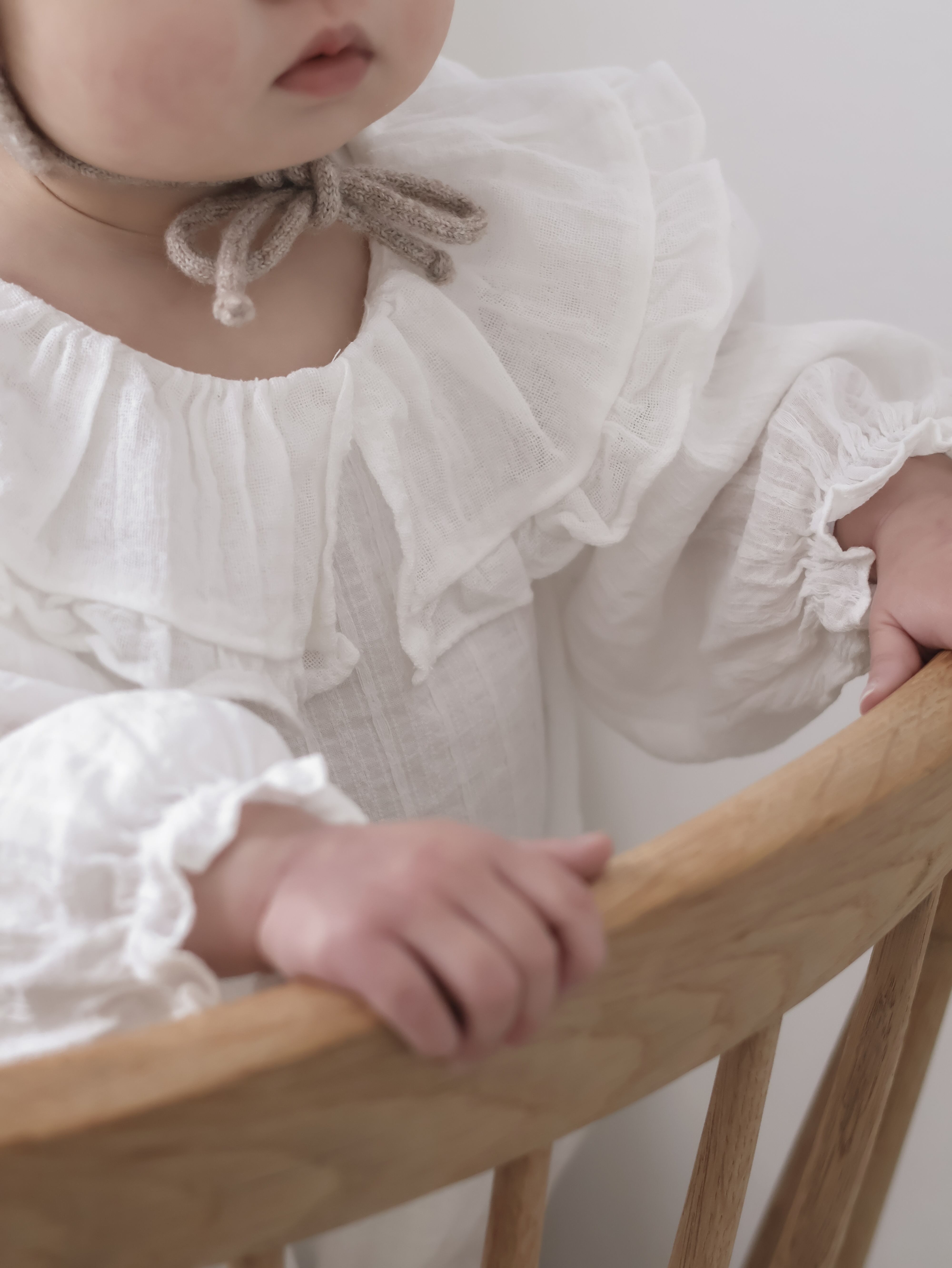 透け感のある生地で襟のフリルが