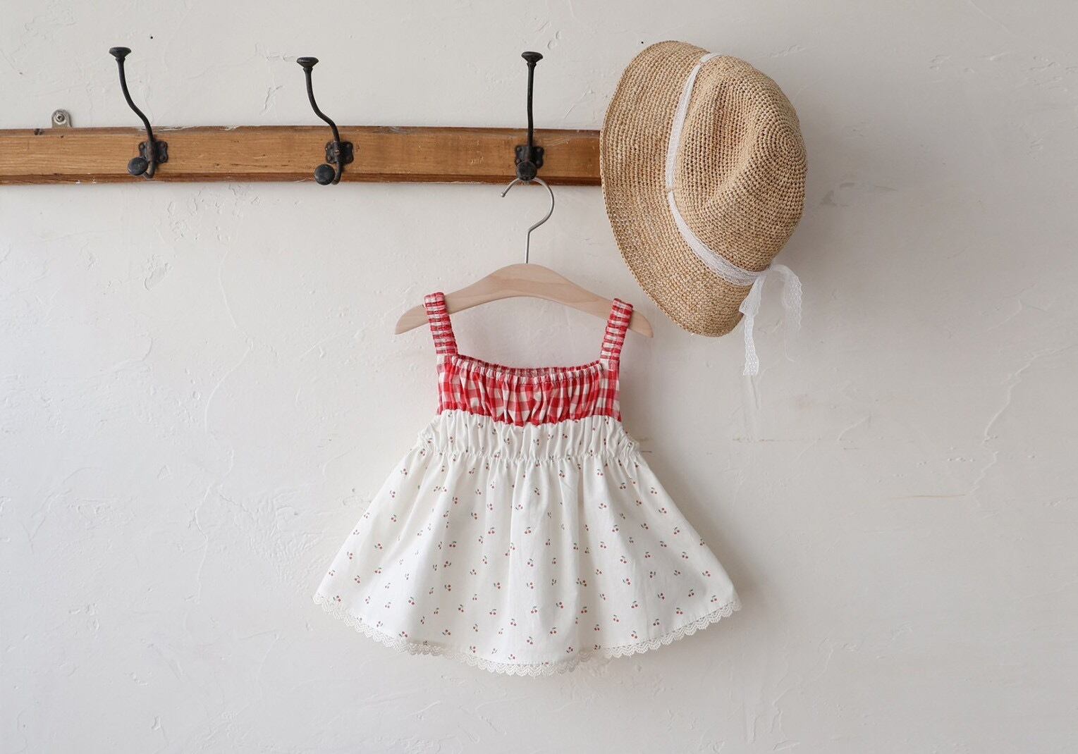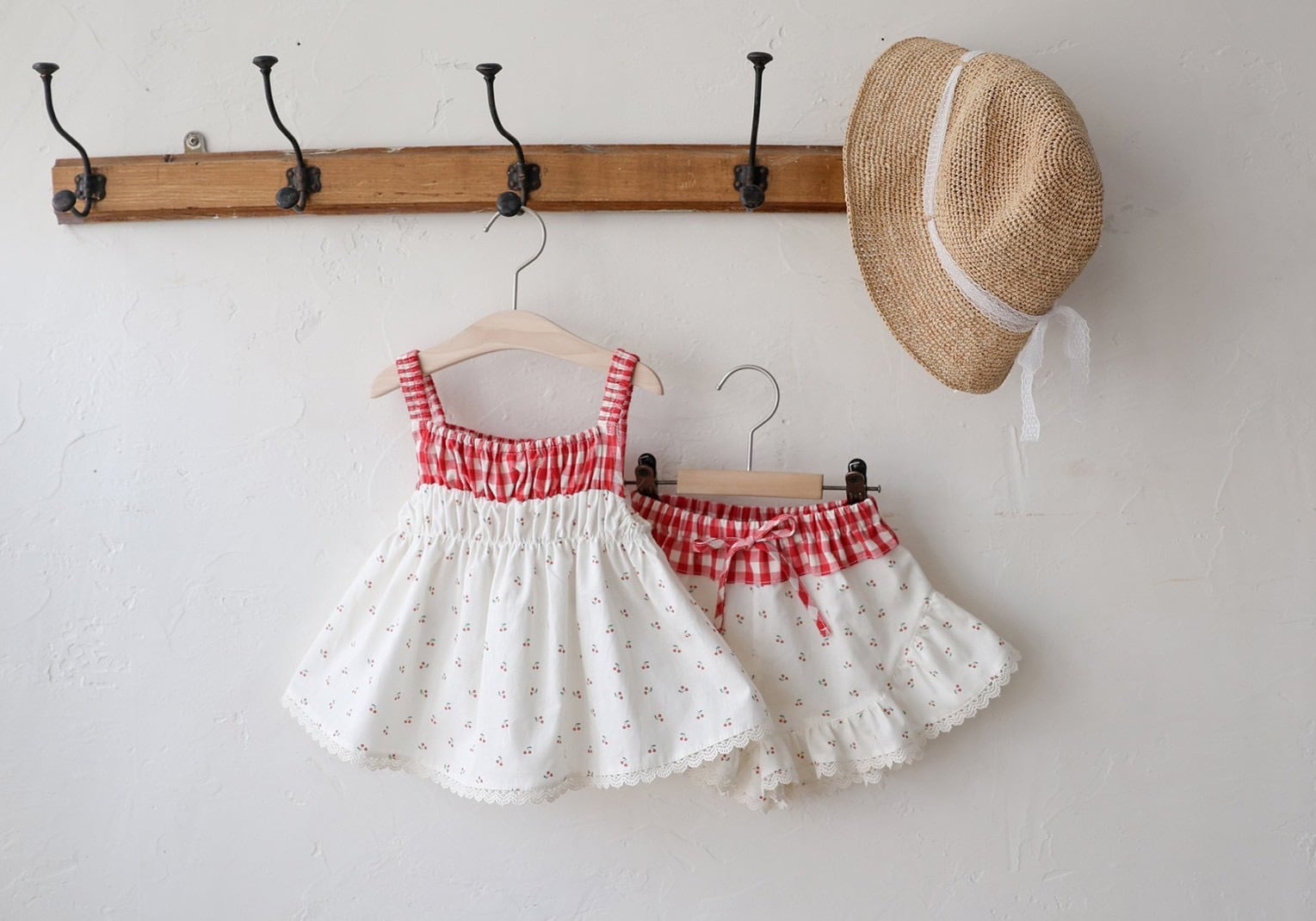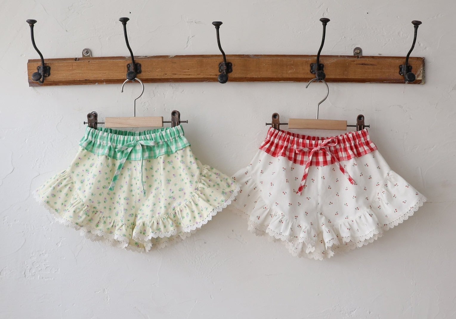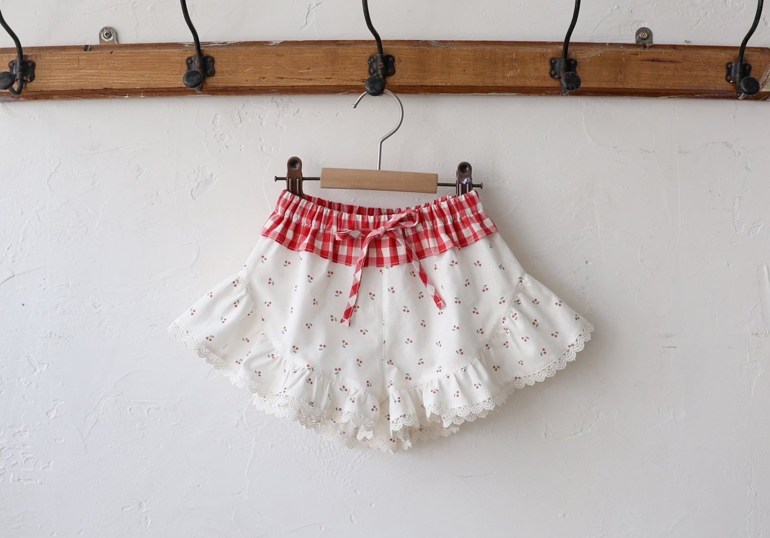 かわいい柄とレース、ウエストのチェック柄。