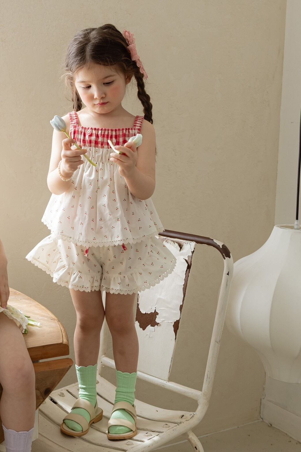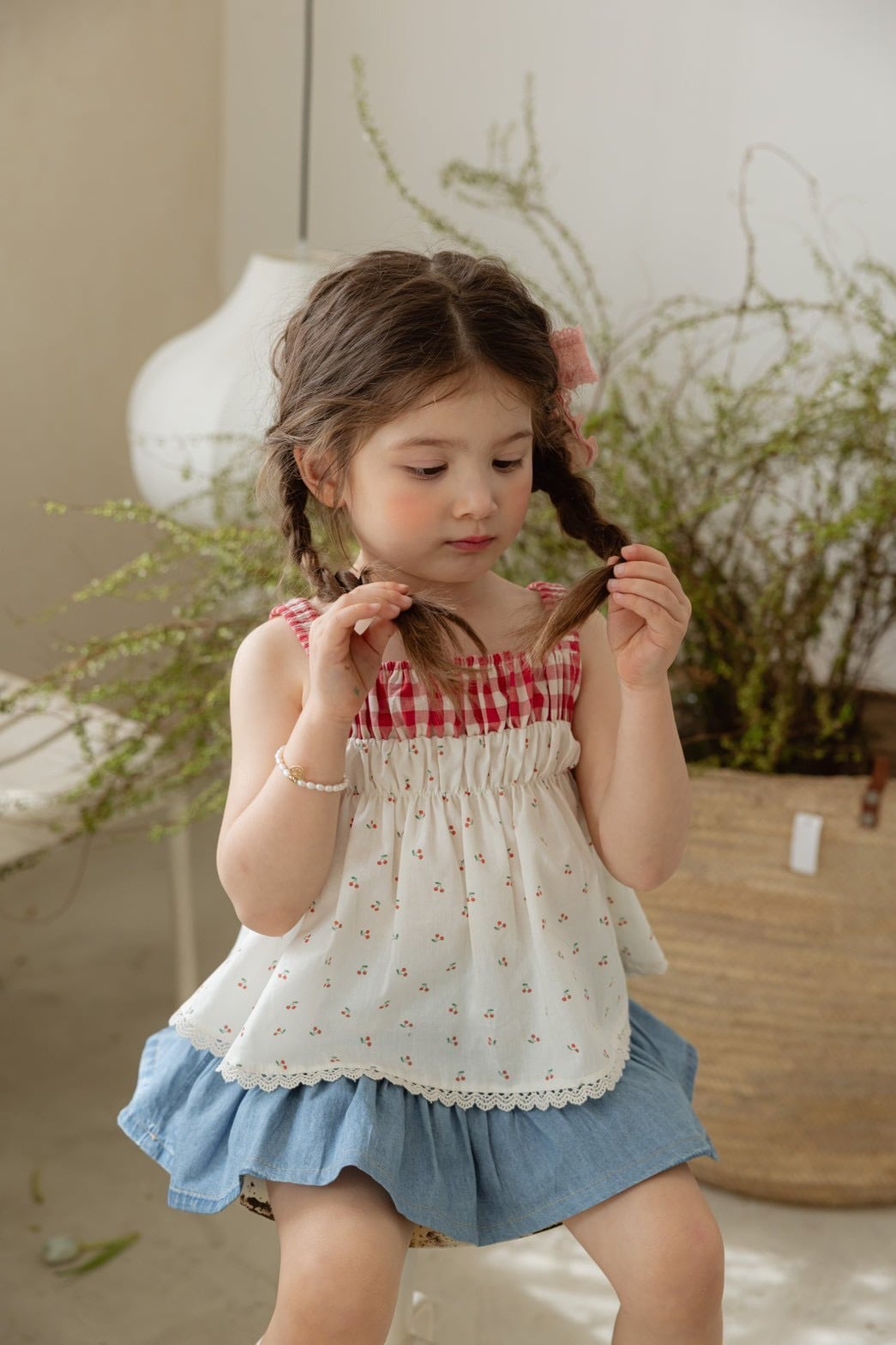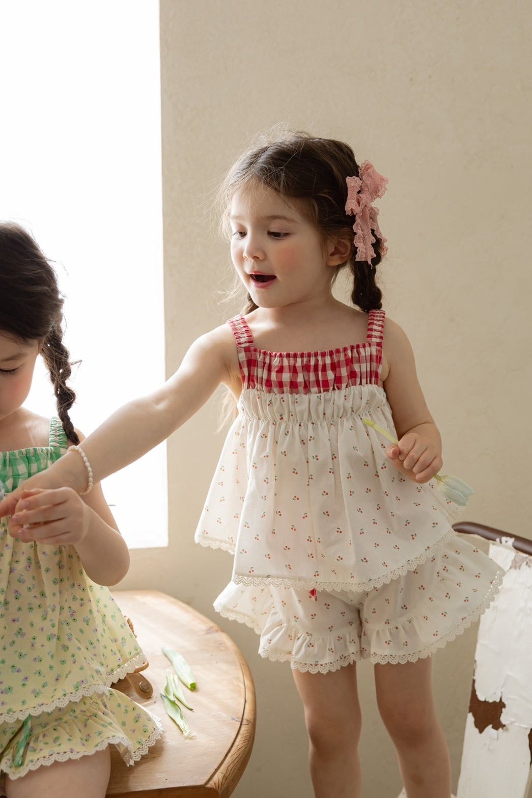 かわいい柄とレース、ウエストのチェック柄。