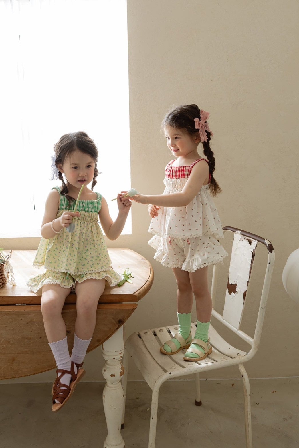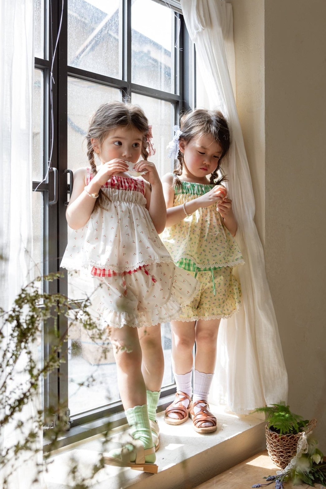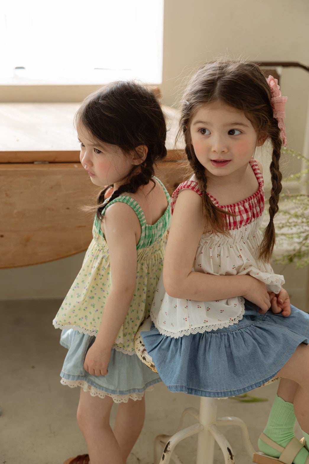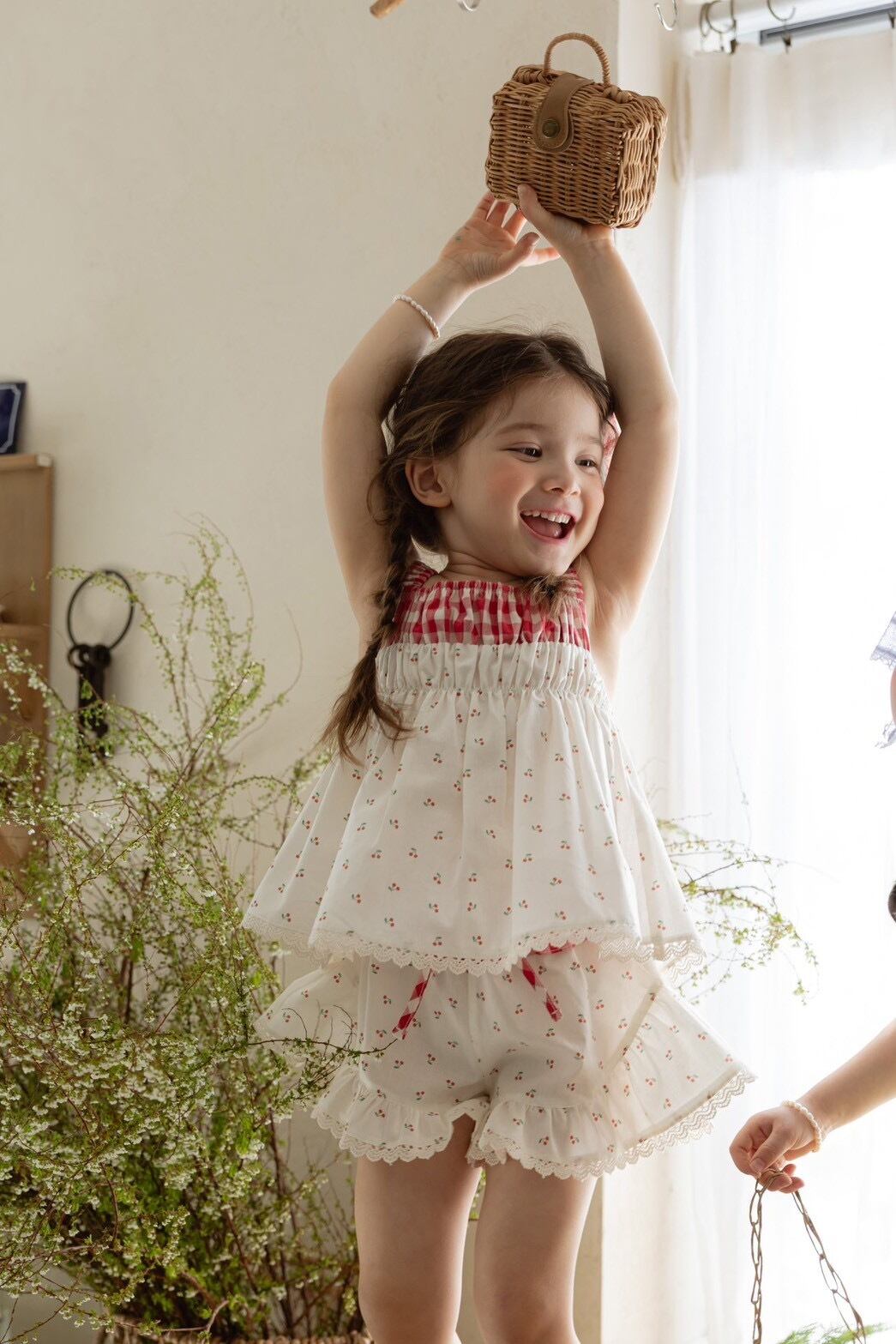 かわいい柄とレース、ウエストのチェック柄。
