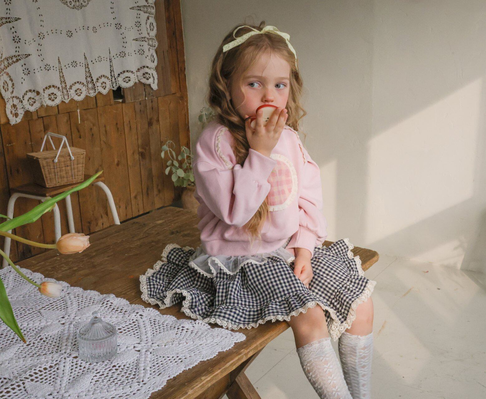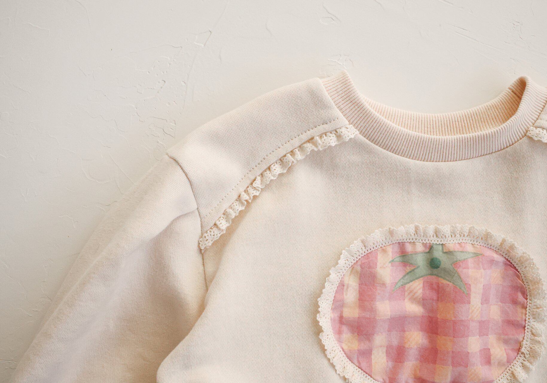 トマトの周りにレースがあしらわれていて